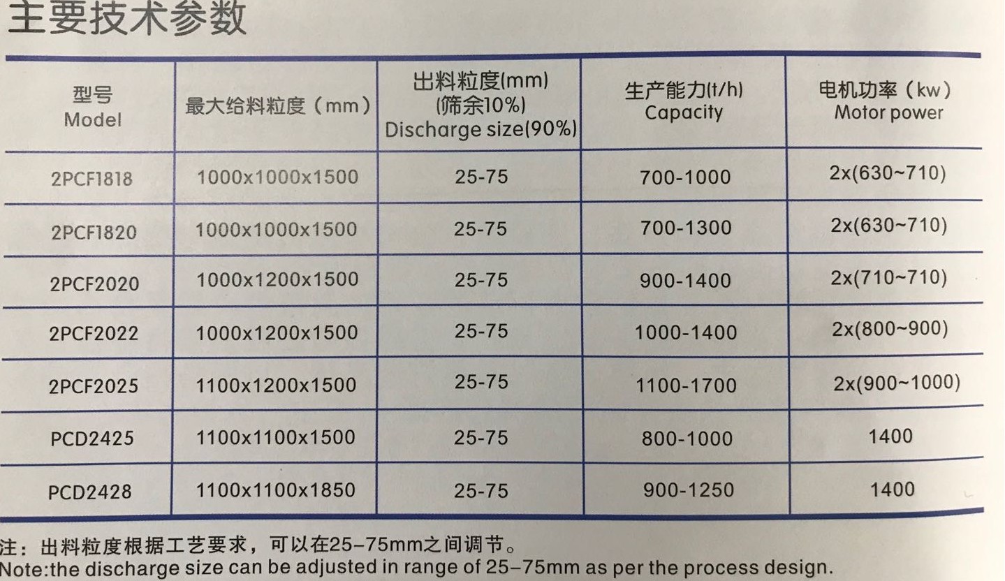1、2PCF雙轉子系列為水泥生產專用破碎機,用于破碎一般的脆性物料,如石灰石、泥灰巖、泥質粉砂巖、頁石膏和煤等。也適合破碎石灰石(泥灰巖)和粘土質混合料。由于本機具有入料粒度大,破碎比大的特點,可將大塊原礦石一次破碎到符合入磨的粒度,使過去需要的多段破碎系統簡化為-一段破碎,與傳統的多段破碎系統相比,可節省一次性投資,并大大降低生產成本。同時,還具有操作簡單,維修方便,勞動強度低等優點。